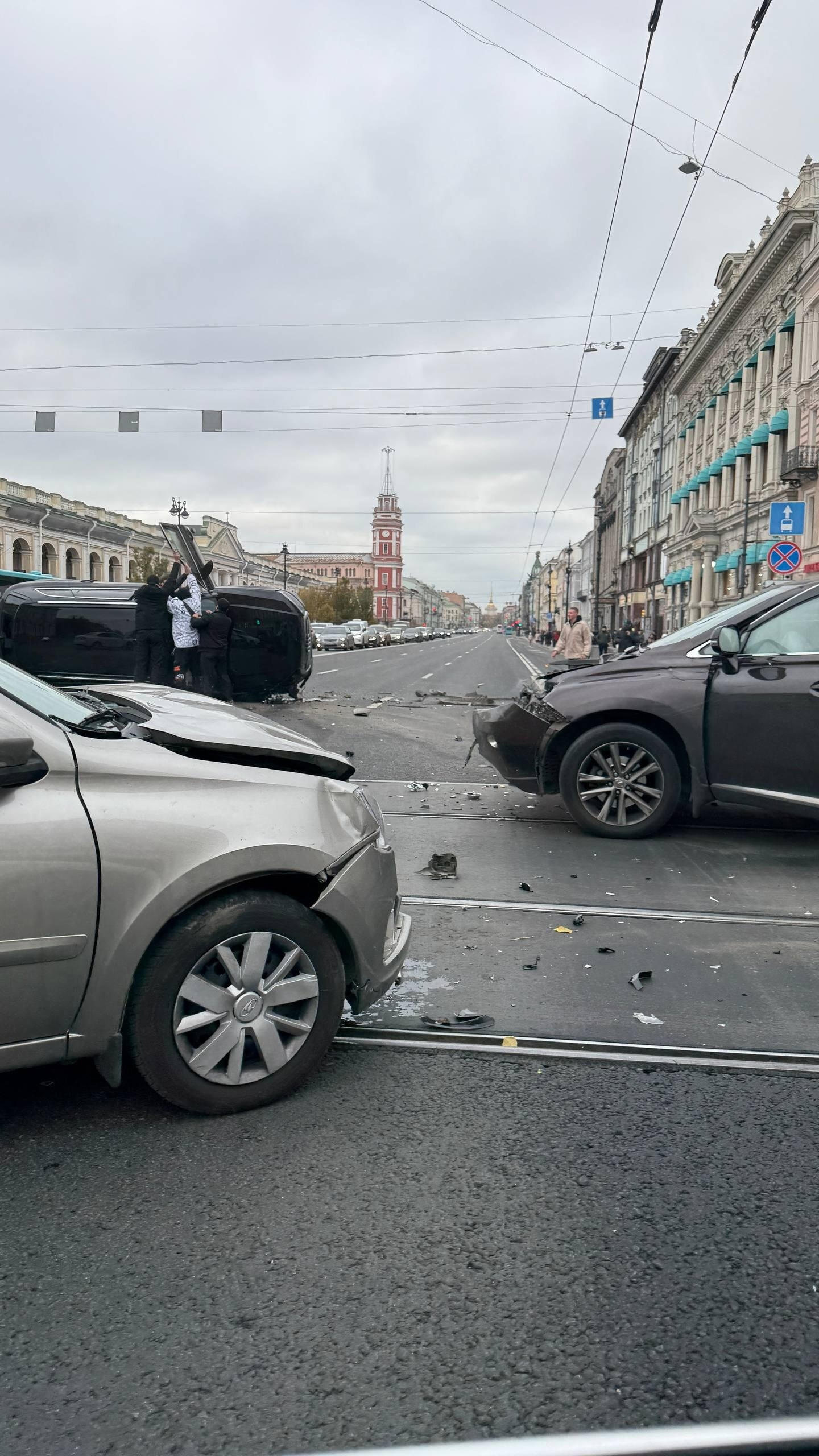 В центре Петербурга сегодня днем произошло массовое ДТП. На перекрестке Невского проспекта и Садовой улицы столкнулись восемь автомобилей.