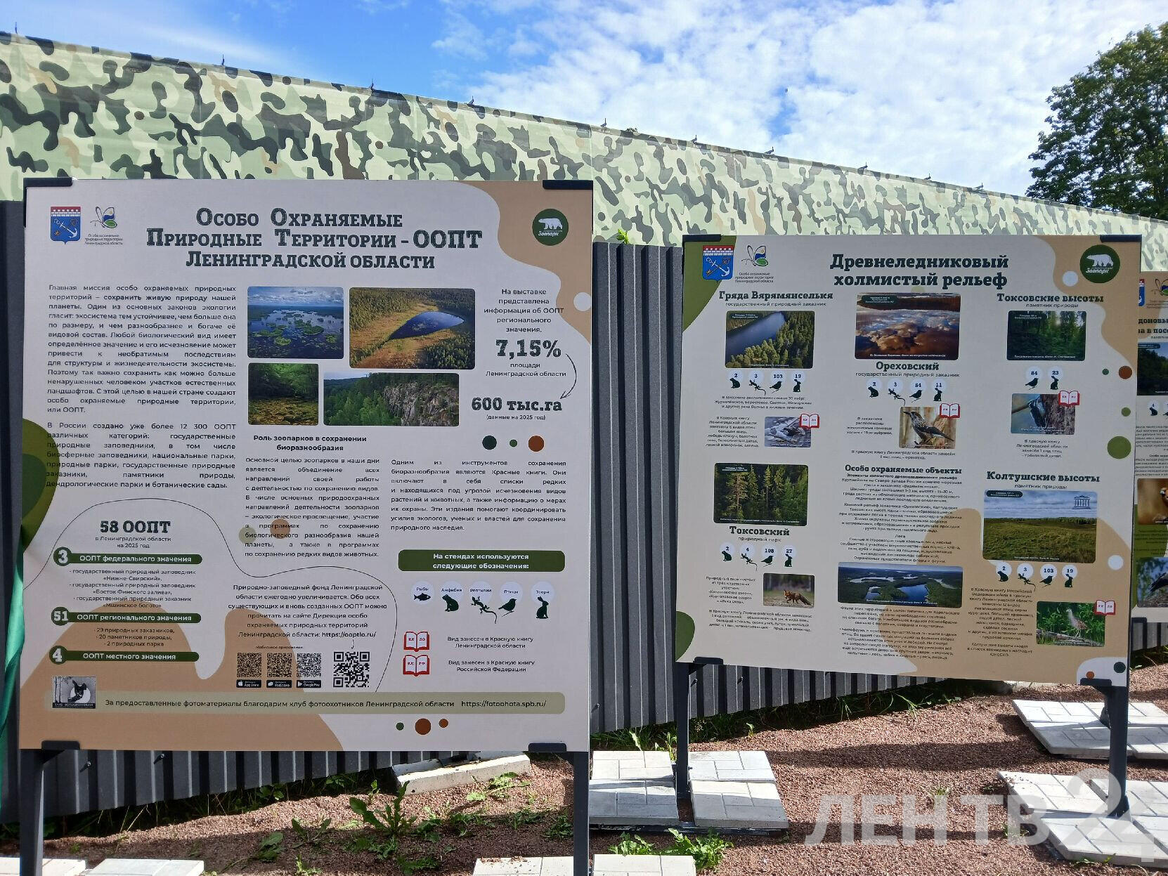 Информацию собирали совместно специалисты зоопарка, регионального комитета по природным ресурсам и Дирекции ООПТ Ленинградской области. Стенды подробно рассказывают об особенностях каждой особо охраняемой природной территории и ее обитателях.