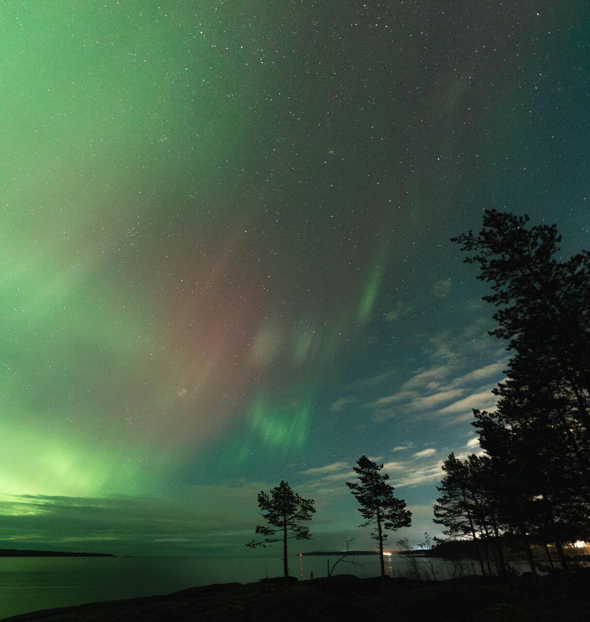 Ярко-зеленое северное сияние наблюдали на берегу Ладоги