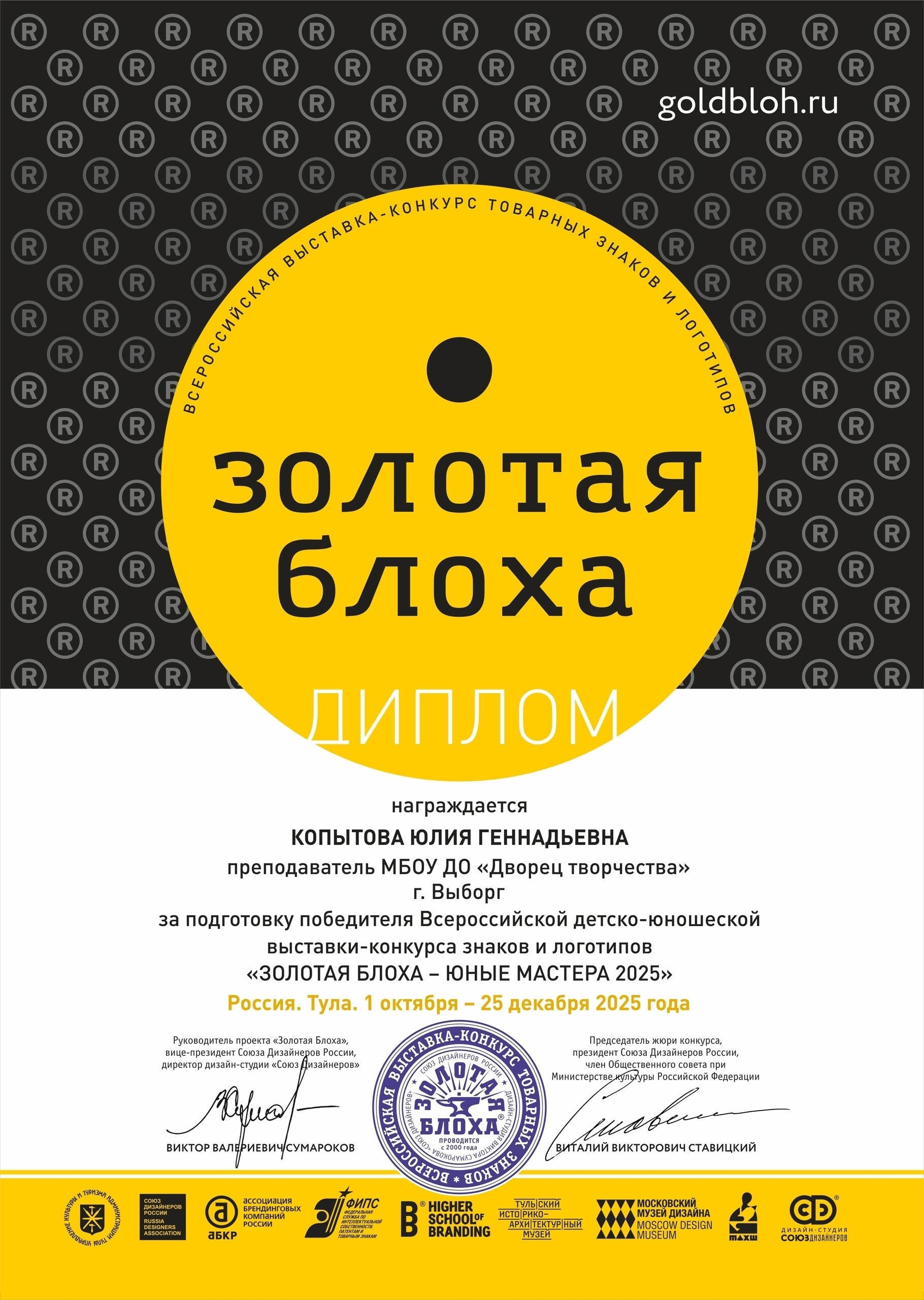 Школьники из Выборга приняли участие во Всероссийском конкурсе знаков и логотипов «Золотая блоха – юные мастера». За победу в нем боролись авторы более 1000 работ из 39 российских регионов.