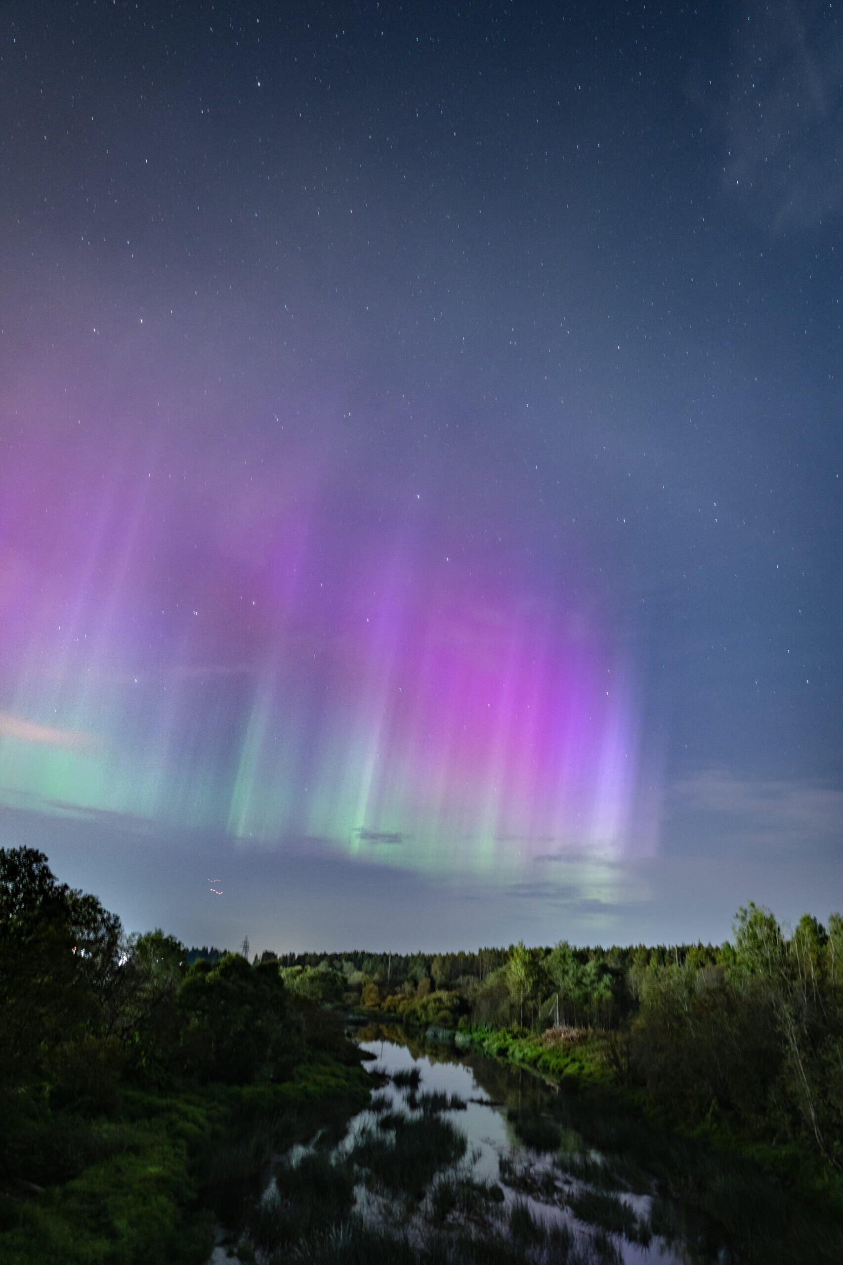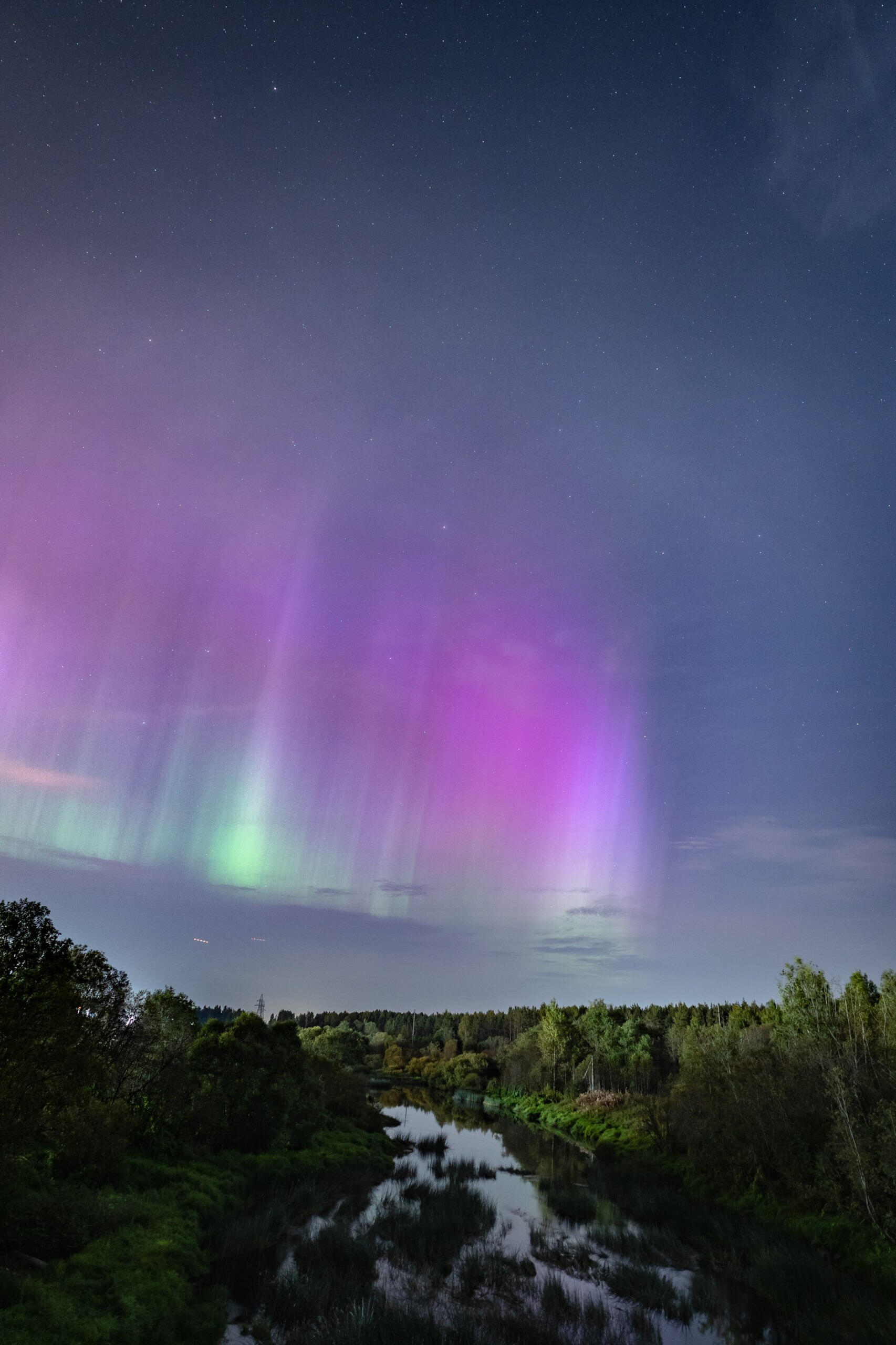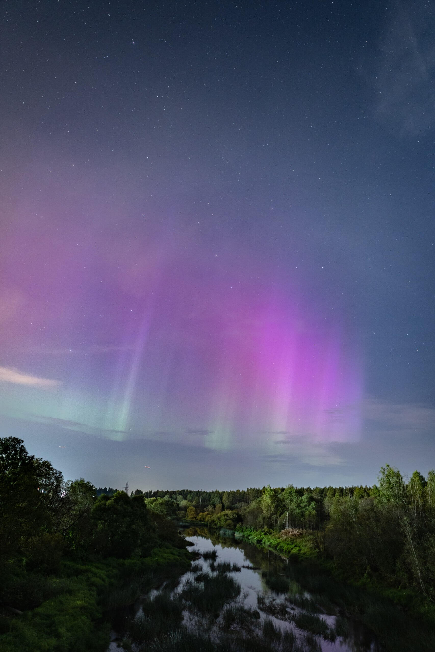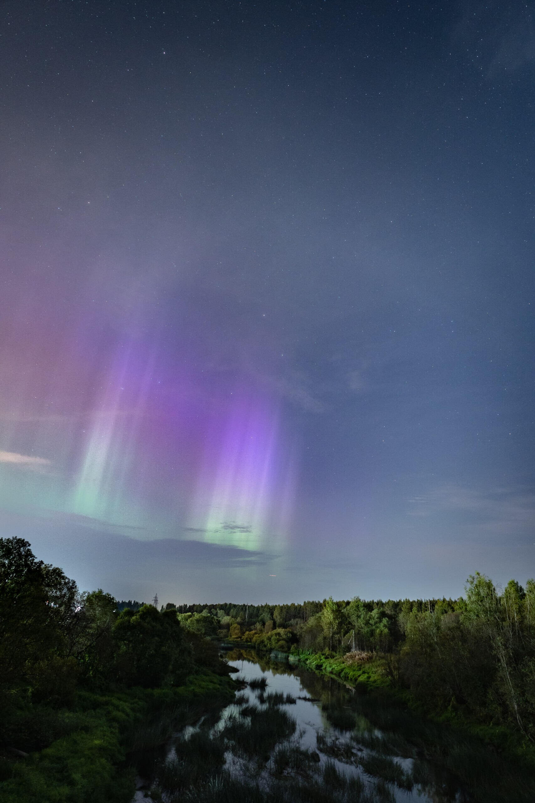 Так, фиолетово-зеленые всполохи окрасили небо в поселке Саблино над рекой Тосна. Пользователь @lady_noname отметила, что погода была не очень хорошей. Однако тучи разошлись, чтобы показать нам всплеск северного сияния. Кадры удалось сделать около 3:30.