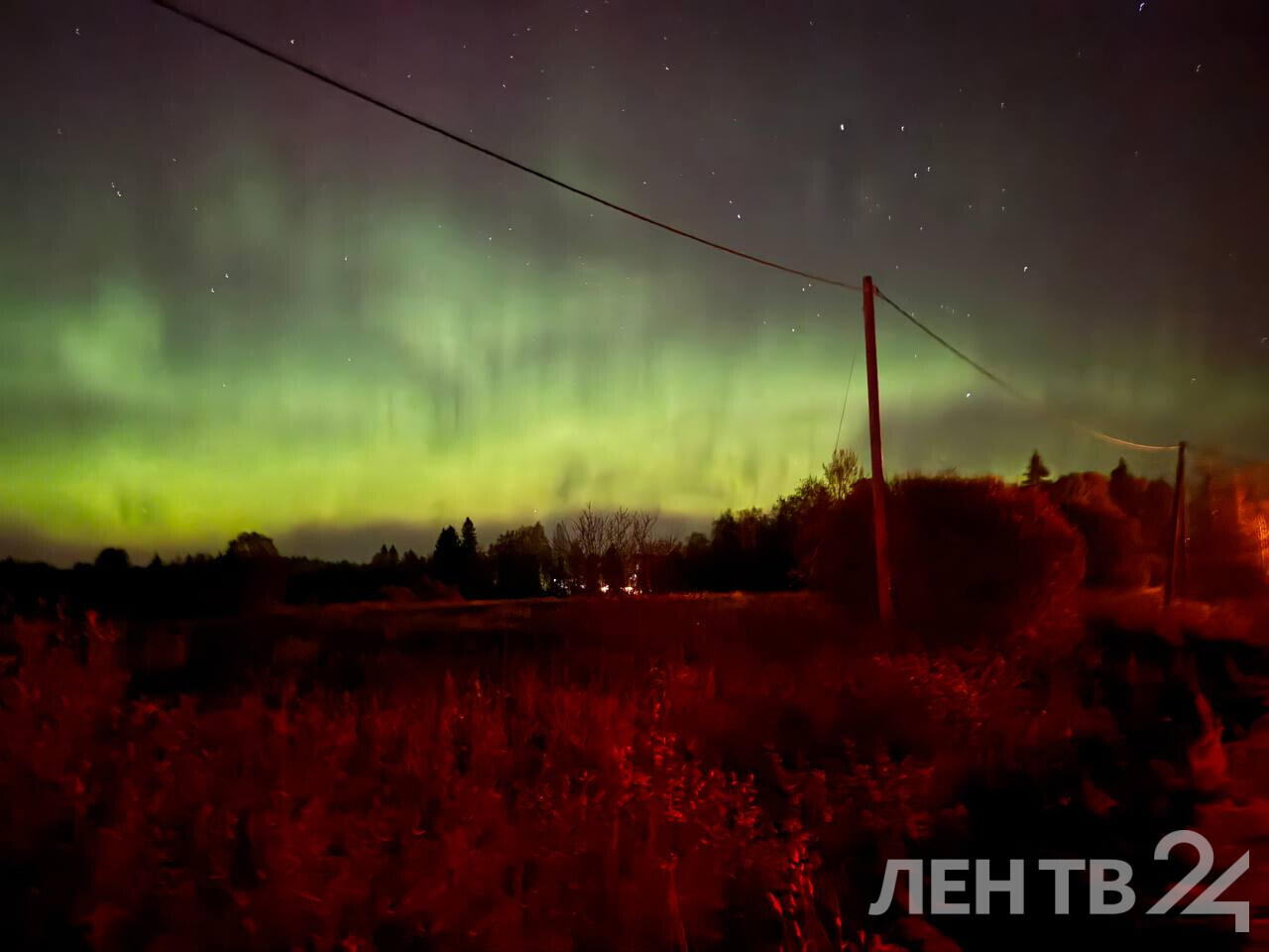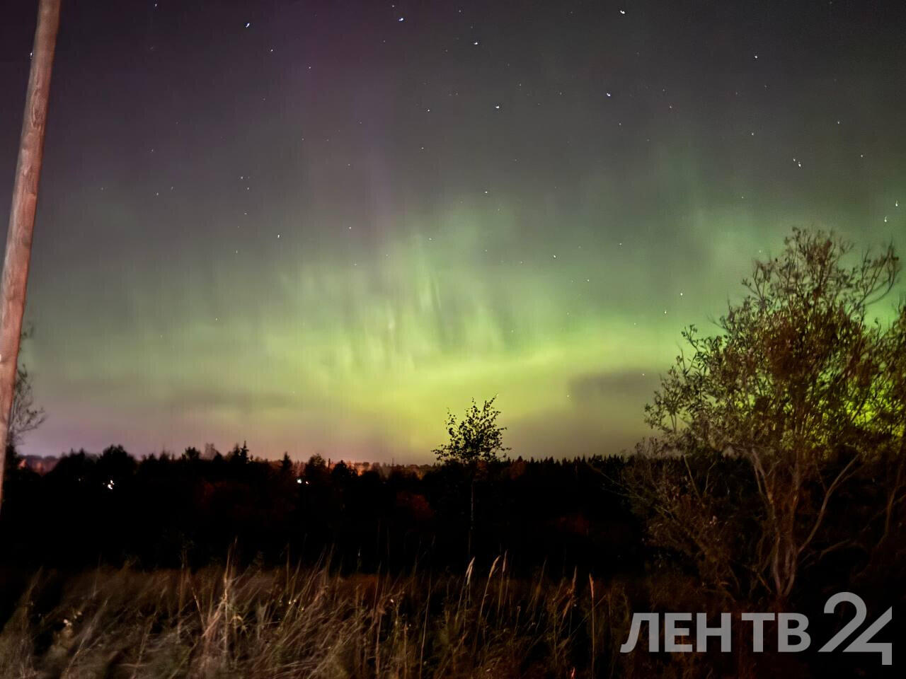 Зеленые огни Авроры раскрасили небо над Ленобластью