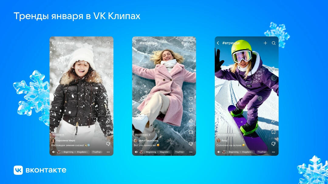 Тренды в VK Клипах: сугробы и активный отдых