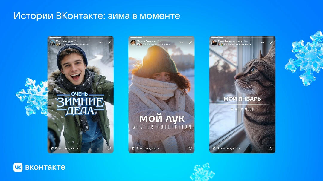 Зима оказалась ключевой темой в клипах и историях в VK