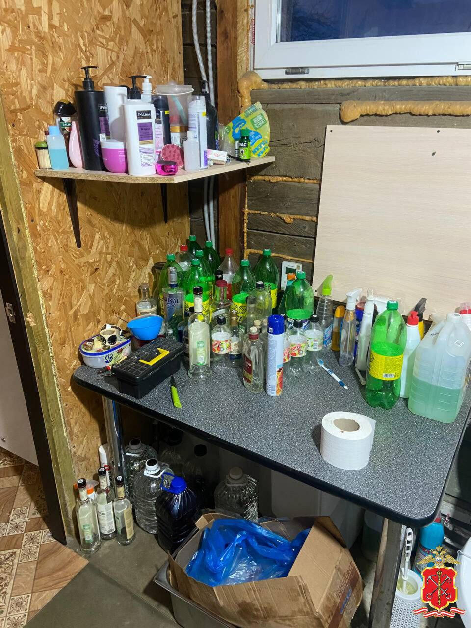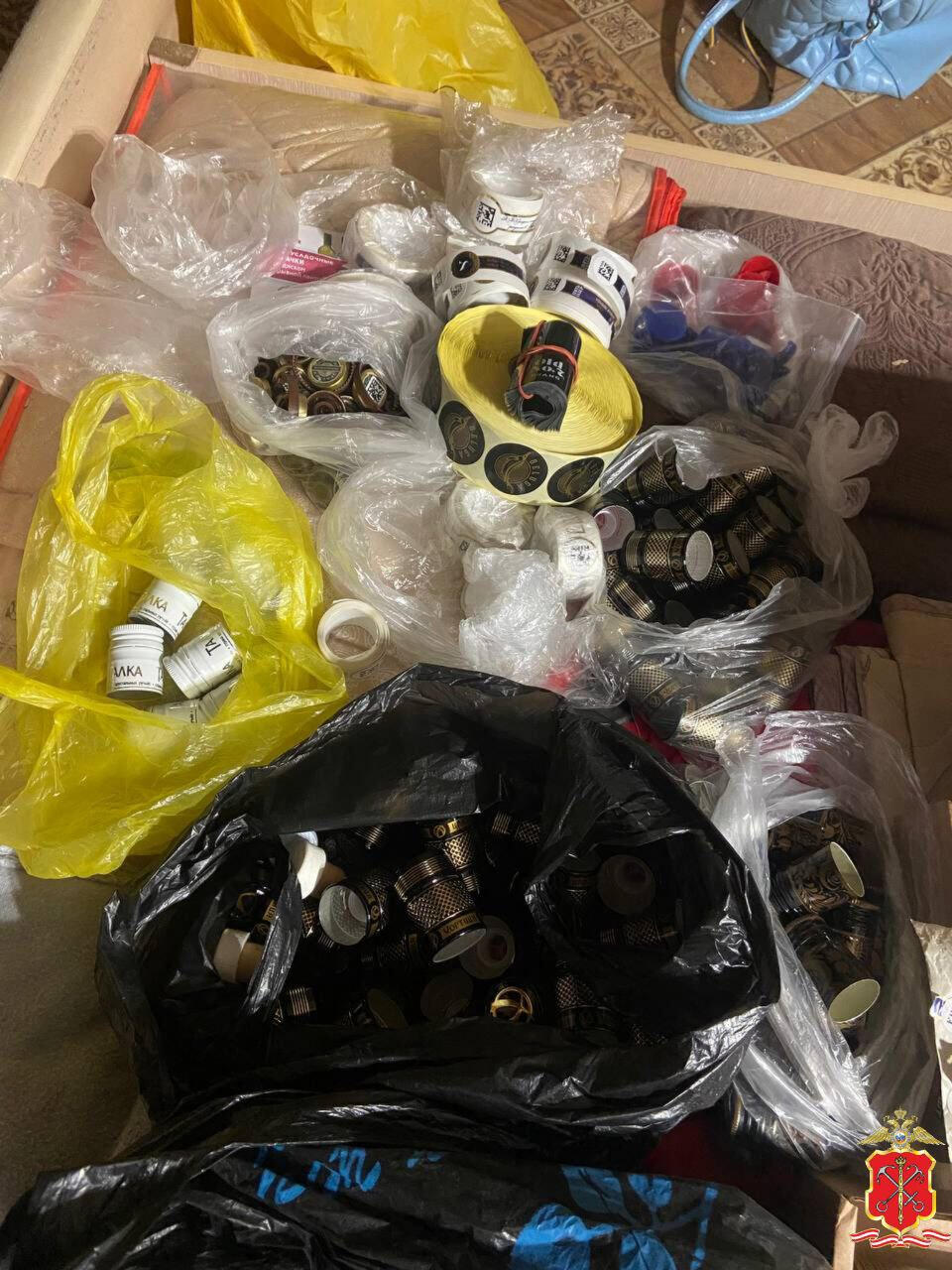 В частном доме злоумышленника, а также хозпостройке на его участке обнаружен и изъят спирт в пластиковых канистрах, спиртосодержащая продукция в пластиковых канистрах и стеклянных бутылках различного объема и брендов, краситель и фурнитура. Общий объем изъятой жидкости составил не менее 393 литров, рассказали в пресс-службе ГУ МВД России по Петербургу и Ленобласти.